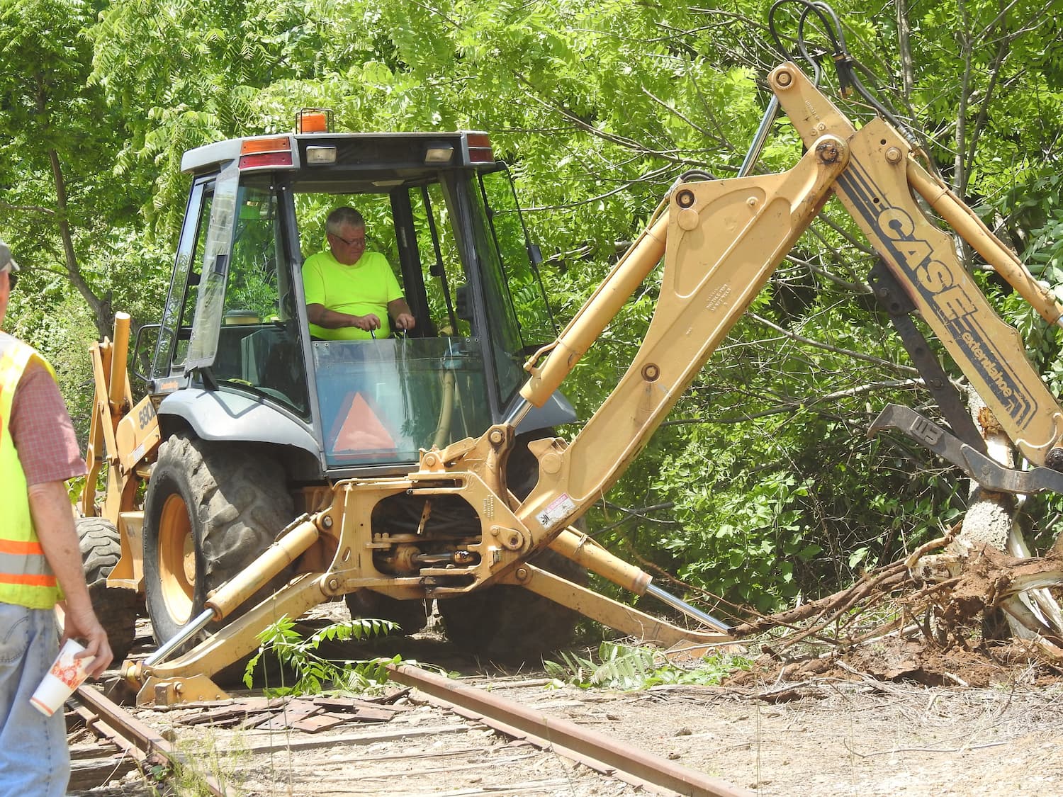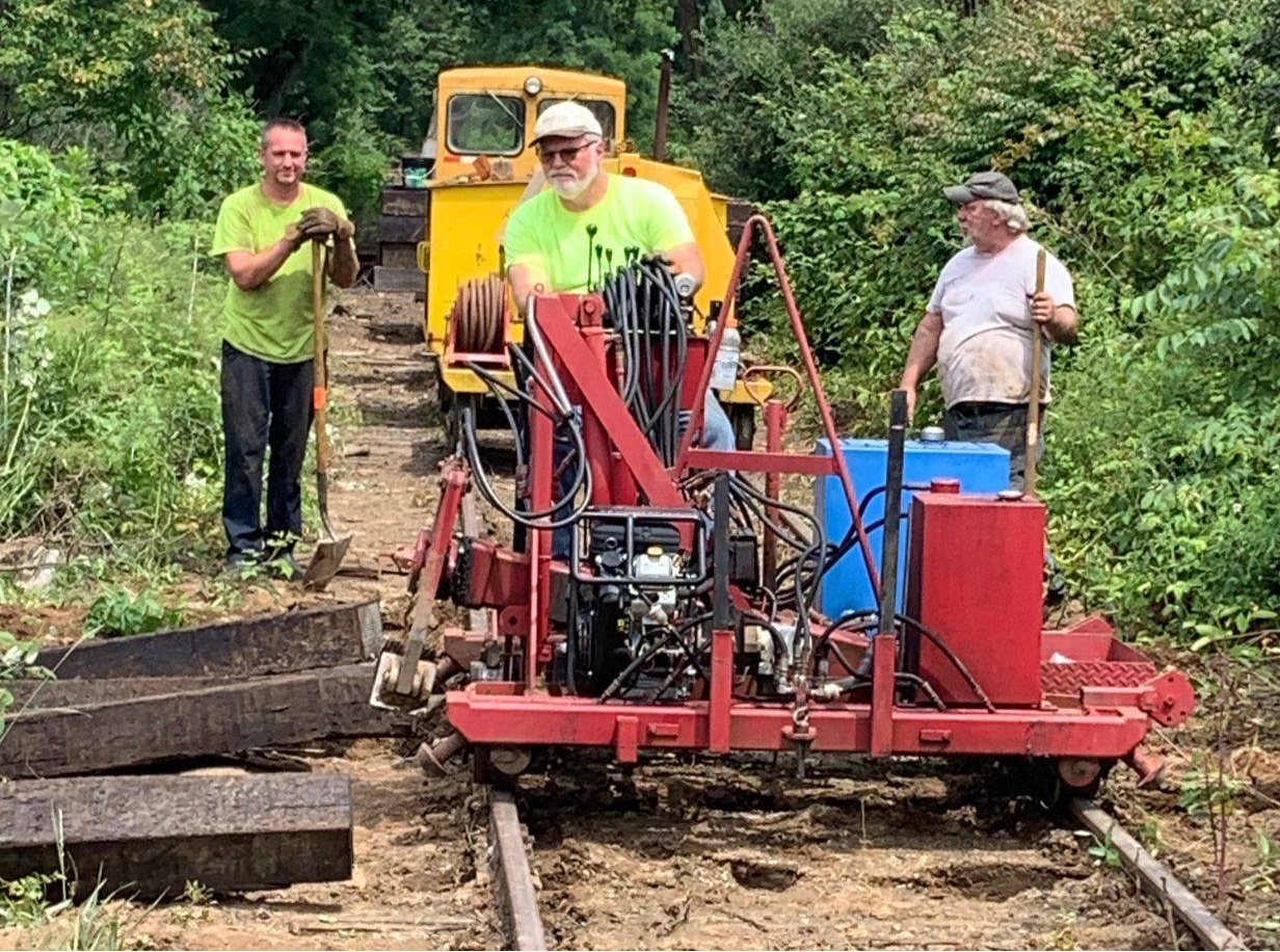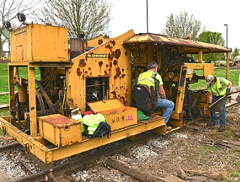 This machine is invaluable; it is used to both pull out old ties and insert new.