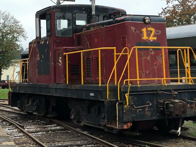 Is a General Electric 80-ton locomotive, built in the 1950’s. This locomotive is owned by one of our volunteers and is being restored to service. It will be used on our line when restoration is complete.
